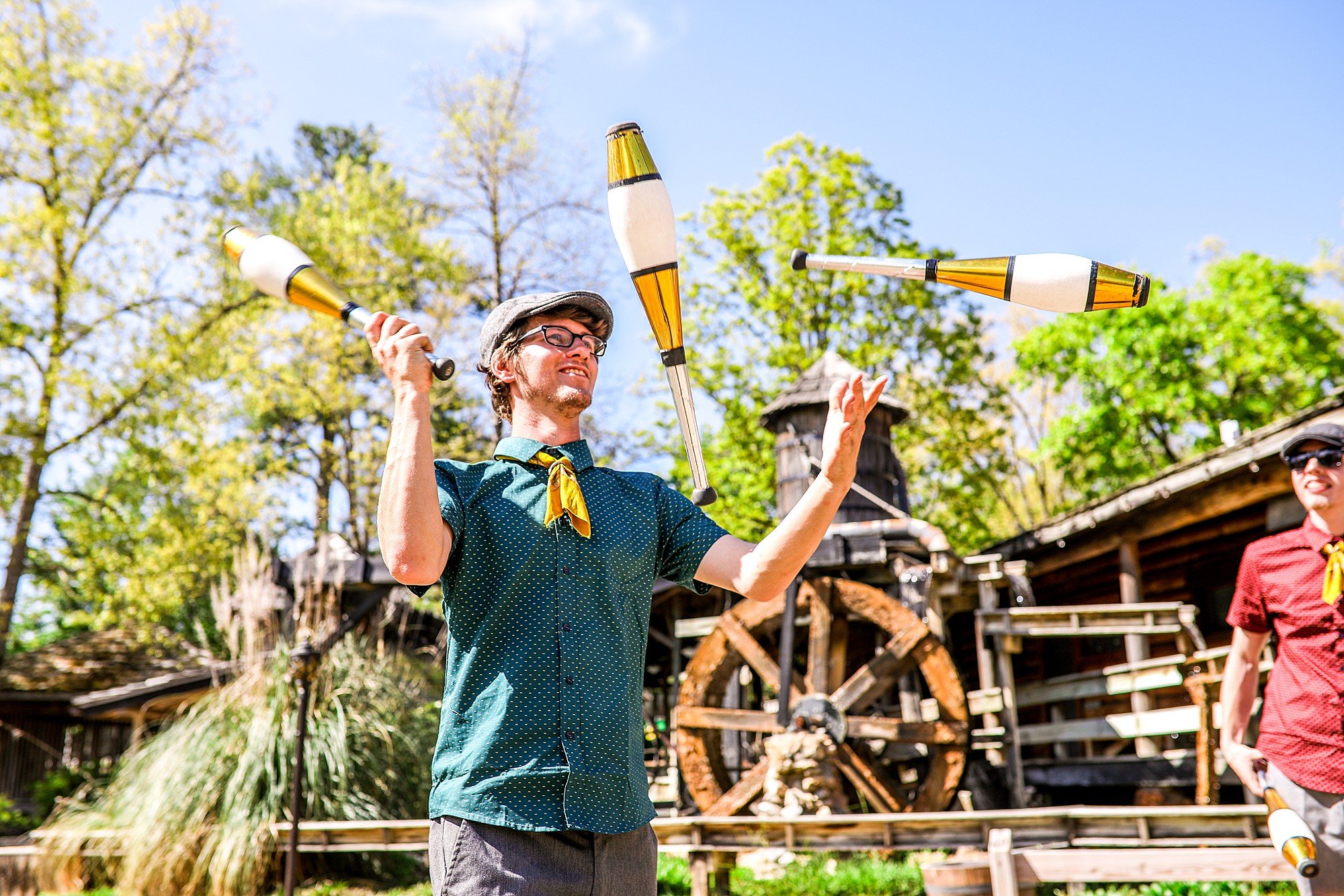 While at our park, make sure to find out what time our craft artisan demonstration and our streetmosphere show is at! Everyday we have exciting entertainment from a blacksmithing show to live streetmosphere performances which range in unique fun from bubble shows to fire dancing! So, be sure not to miss these special features in our park.