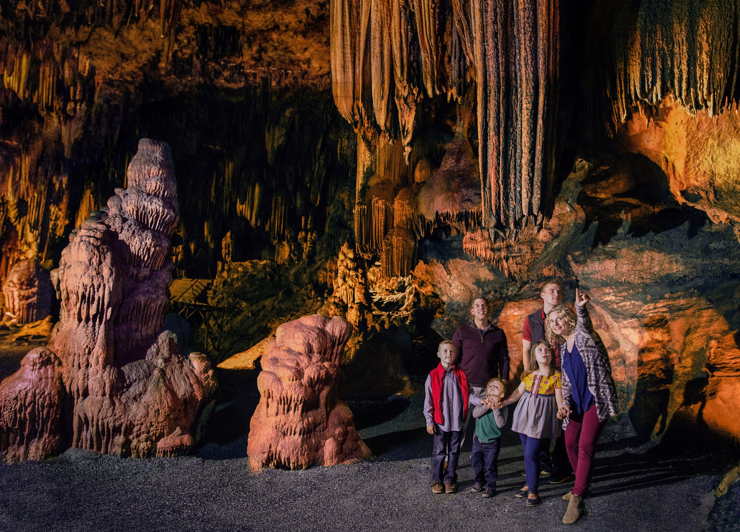 What makes Majestic Caverns a great destination for those planning to visit caves in 2022? For one thing, Majestic Caverns is the most historic caverns in the nation! George Washington heard about it from one of his Indian scouts who reported that it was the most peaceful majestic place, and the walls reminded him of the most beautiful tapestries in Europe. Majestic Caverns has been reported as the caverns with the largest accumulation of gemstone quality onyx in North America! The caverns is home to the longest recorded hanging draperies (a beautiful formation) in America. With intricate formations and an underground waterfall to see, this Alabama cave system is perfect for anyone wanting for an exciting day trip. So, if you are looking for a bucket-list caverns to visit during the International Year of Caves and Karst, you are coming to the right place!