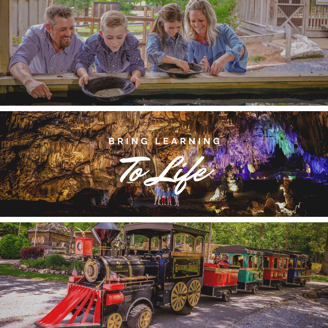 2. Next, choose which activities you want your students to participate in. There are plenty of options available, from the absolute must-see Guided Caverns Tour to panning for gemstones, to our 3/4 acre maze! We allot 1 hour of time for the caverns and 30 minutes per attraction, so be sure to keep in mind how much time you have for your visit. Almost every field trip visit to Majestic Caverns includes the gemstone panning and maze experiences, but if your group has more than 2.5 hours for their visit, we recommend adding on the Destiny Express Park Train, the traverse wall, and the cannon wars for some additional learning fun! We wrote a blog on a few of our most popular educational attractions that you can learn more about here.