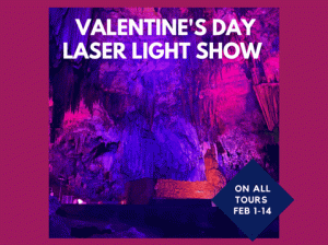 During the Valentine season, Majestic Caverns features its Valentine’s Day Laser Light Show on guided cavern tours. This special presentation is included as part of the tour experience.