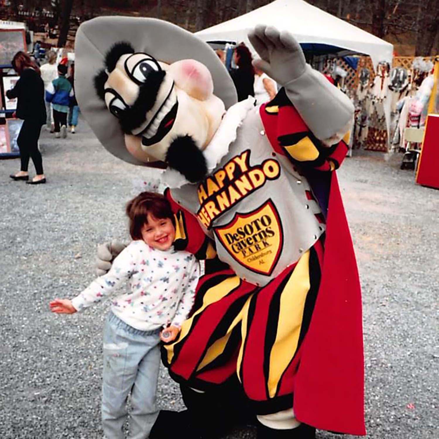 Joy Sorensen with her father, Allen Mathis III, in the Happy Hernando suit