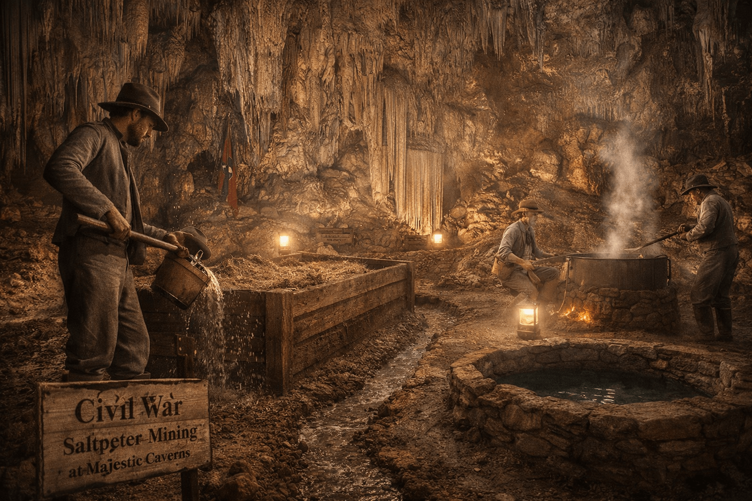 In the American Civil War, industrial shortages shaped strategy as surely as troop movements. Few materials illustrate this more clearly than saltpeter, the nitrate component needed to manufacture gunpowder at scale. When Confederate supply lines tightened under blockade and battlefield demand surged, the South turned to local landscapes for what it could not reliably import. Caves, with their nitrate rich soils, steady temperatures, and sheltered interiors, became practical sites for wartime extraction.