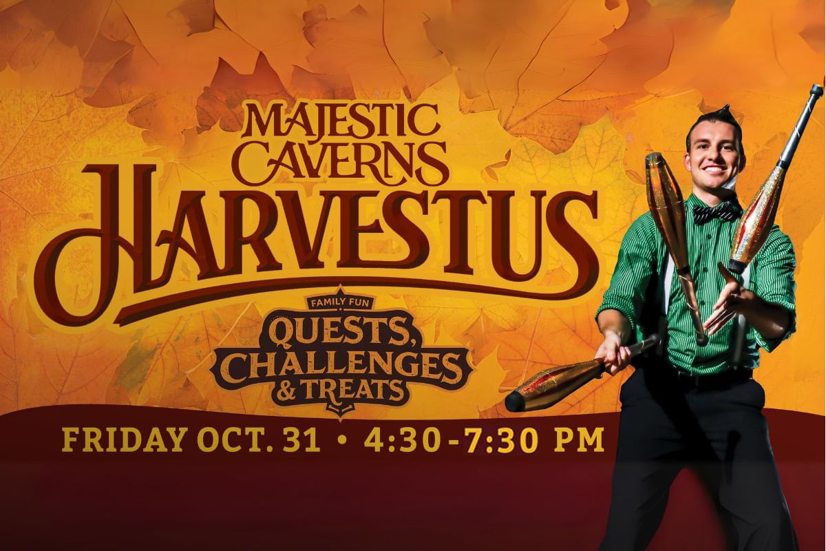Reserve your spot super early because this totally unique wholesome Halloween alternative is only available one night in 2025, and it’s completely weather-proof! 🎫 Years from now, your children will remember the Halloween they went underground for the adventure of a lifetime with joyful entertainment and the most positive themes ever! They’ll tell the most amazing stories about solving puzzles in America’s most historic caverns, collecting both traditional and dye-free treats 200 feet below the surface, and experiencing the total wonder of the underground world during that very first Harvestus celebration! 📖✨